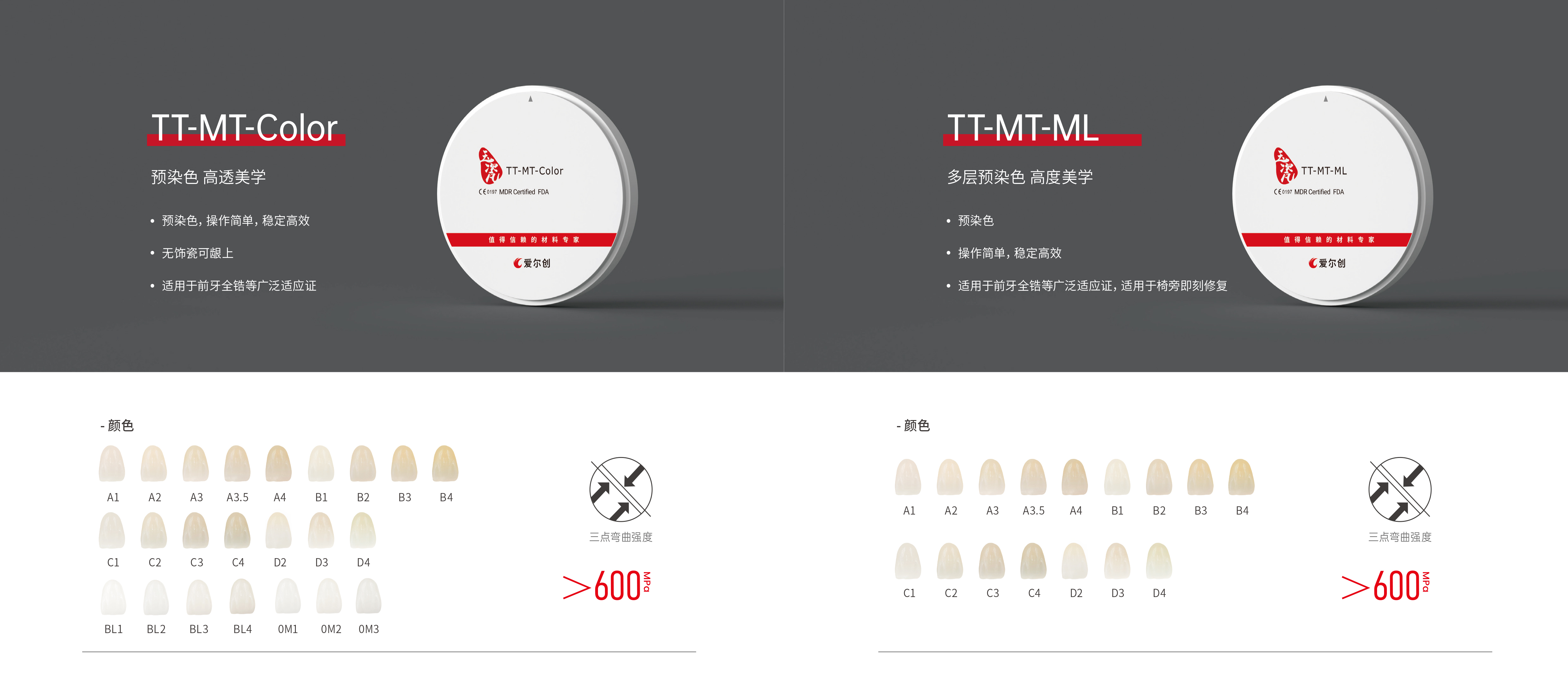 爱尔创全瓷义齿用氧化锆陶瓷是多晶陶瓷类义齿修复材料,涵盖爱尔创瓷倍健、爱尔创魅影和爱尔创玉瓷三大义齿品牌。爱尔创玉瓷旗下材料具有极高的透性,适合制作高端仿真美学修复体。